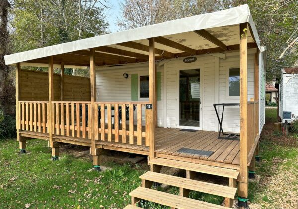 Each mobile home has a private area with a wooden terrace, usually shaded. It is the perfect place to enjoy meals, relax or share a convivial moment outdoors, while enjoying the peace and quiet of the surrounding nature.